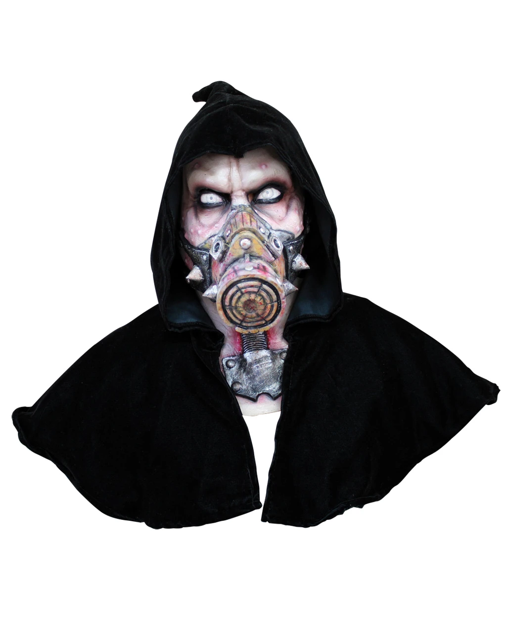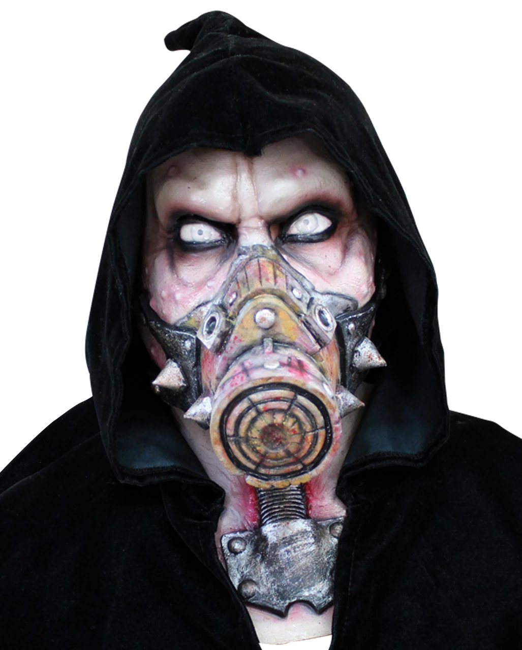 Die hochwertige Biohazard Latex Maske ist eine Vollkopfmaske und bedeckt mit der Kapuze zusätzlich Schulter und Rücken. Extrem gruselige Halloween Maske für Endzeit Fans der Zombie Apokalypse.