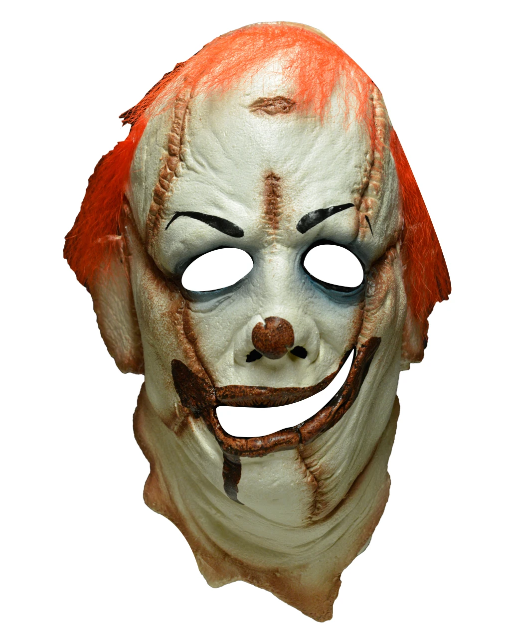 Der Grusel Clown kommt frisch aus der Feder des bekannten Maskenbildners Justin Mabry. Die Halbmaske ist quasi überzogen von beängstigenden Details, wie tiefe Narben über das ganze Gesicht, oder hübschen Kunsthaarbüscheln an Schläfen und Stirn. Die Grusel Clown Maske ist nicht nur handgefertigt sondern auch handbemalt.