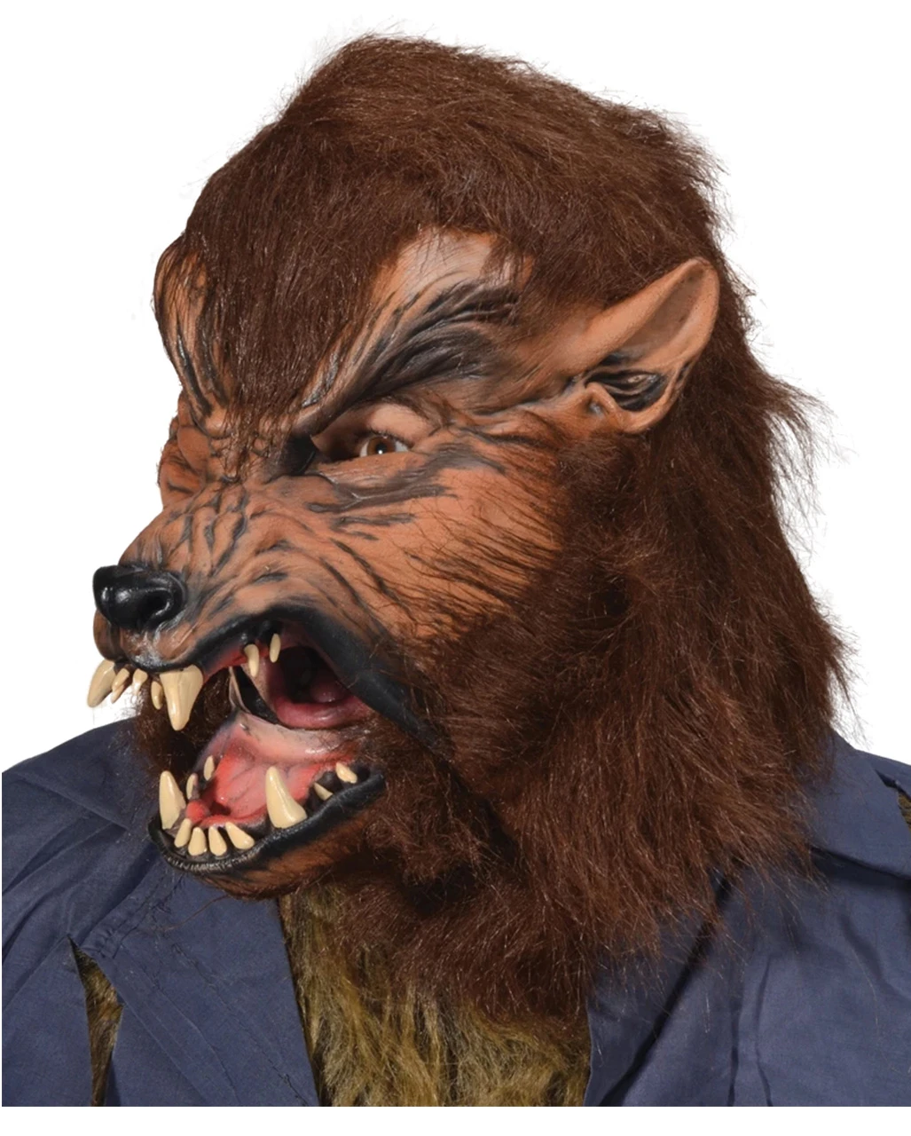 Werwolf Maske einer haarigen, braunen Bestie mit Reißzähnen