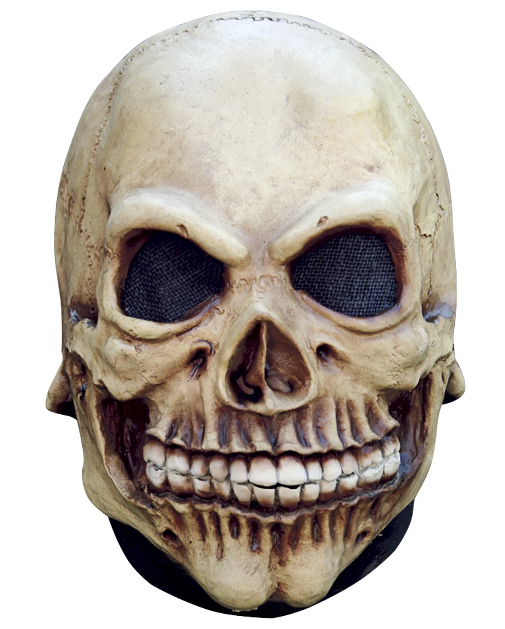 Die Totenschädel Maske für Kinder ist elfenbeinfarben mit brauner Patina. Fantastische Halloween Maske aus hochwertigem Latex, extra in der Größe für Kinderköpfe hergestellt. Die Augenhöhlen der Skullmaske sind von hinten mit einem schwarzem Netz abgedeckt, so dass man die Augen von außen nicht sieht, eine Durchsicht für den Träger der Maske aber nahezu ungehindert möglich ist. Die passende Klassische Geistersense und das Gevatter Tod Kinderkostüm Gr. M und du erschreckst damit alle Halloween Geister.
